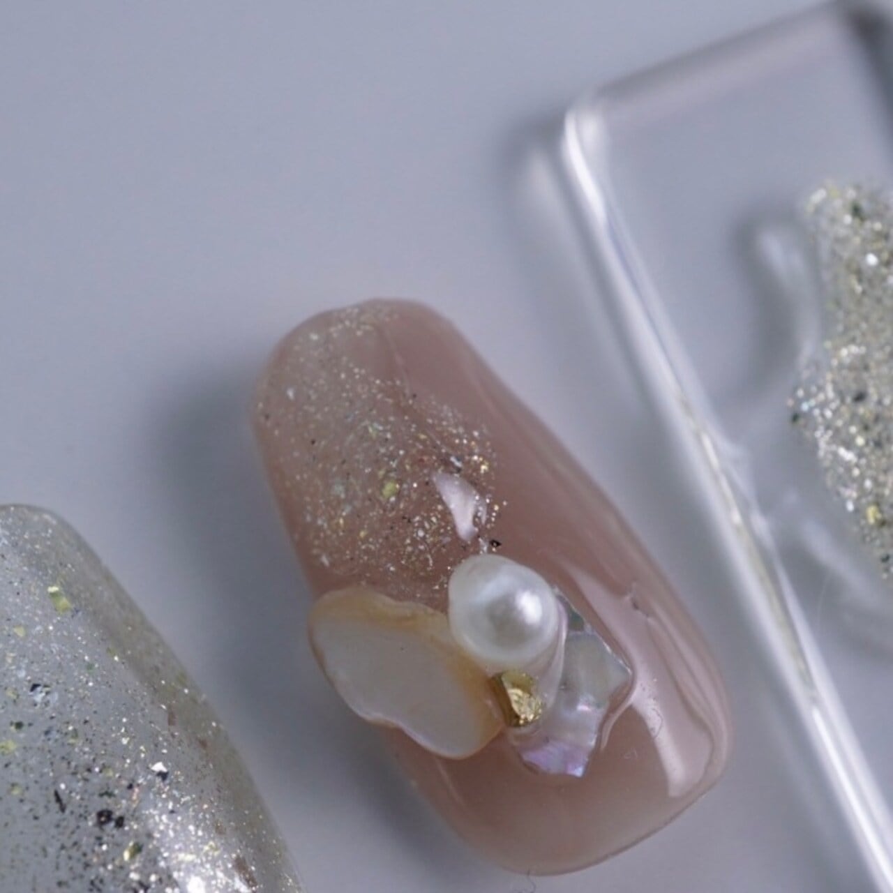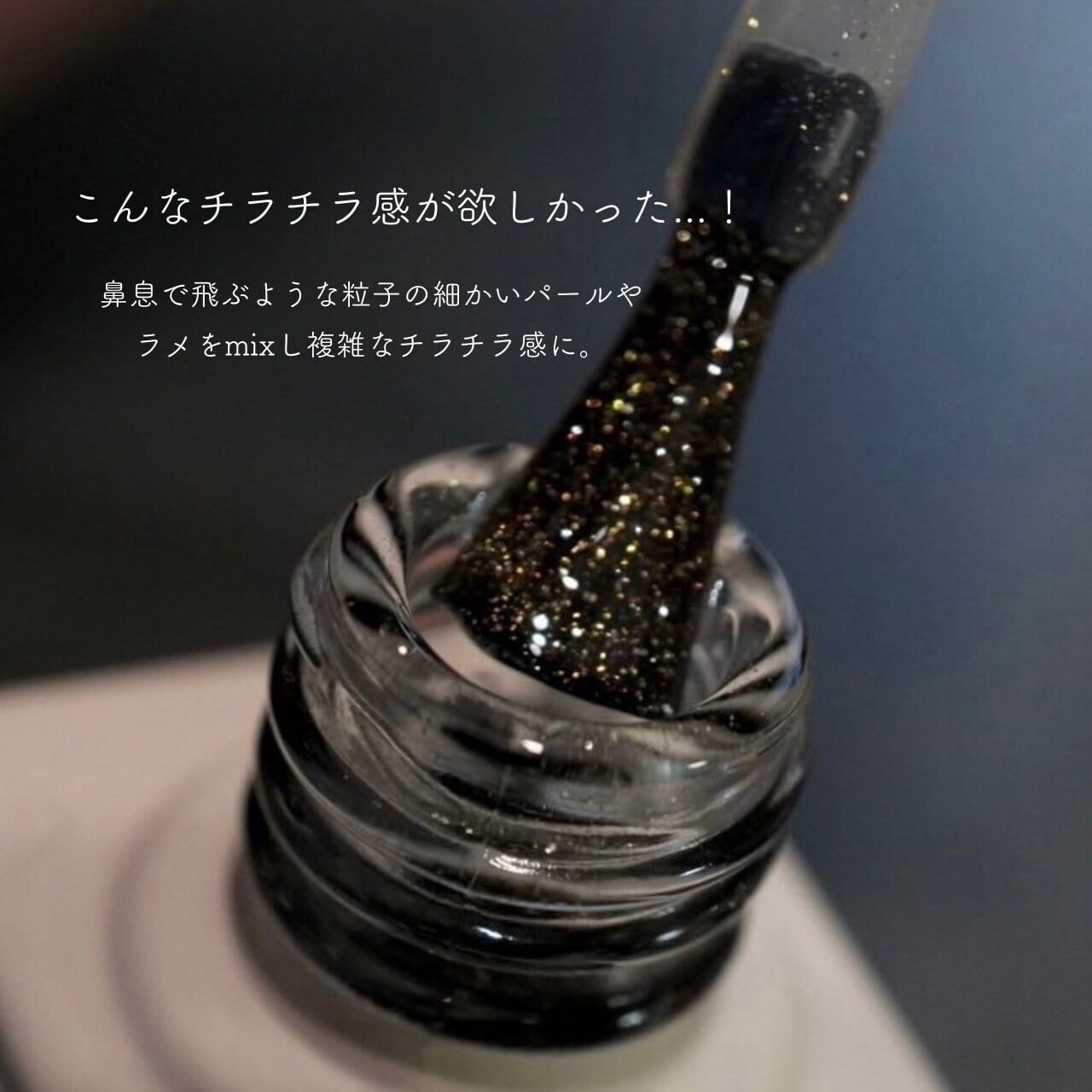 乱切りタイプのラメを使用しているため、製造工程上まれに大きめのラメ片が混入する場合がございます。
